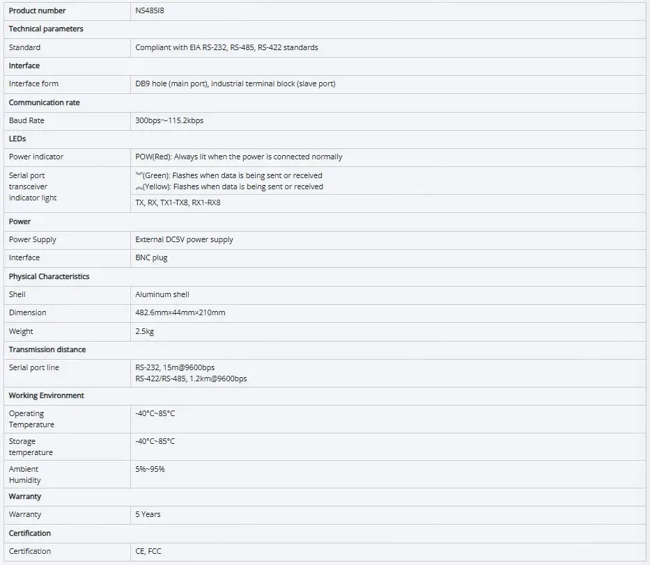 ● Support 1-way RS232/485/422 to 8-way RS485/422